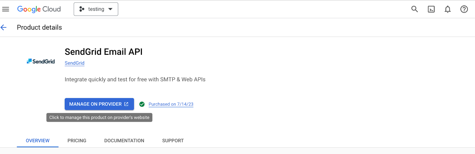 Then click “Manage on Provider” to be taken to your SendGrid dashboard.